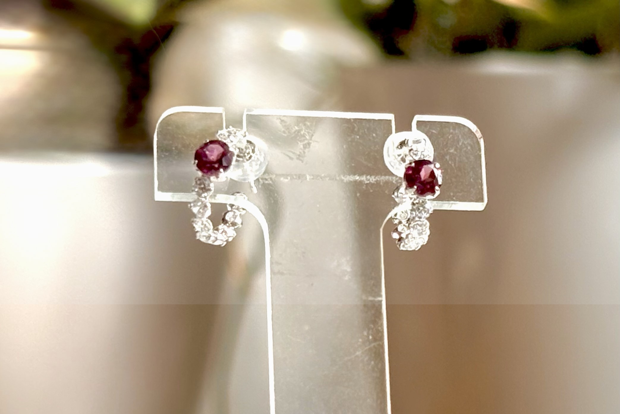 K10WGガーネットキュービックジルコニアピアス