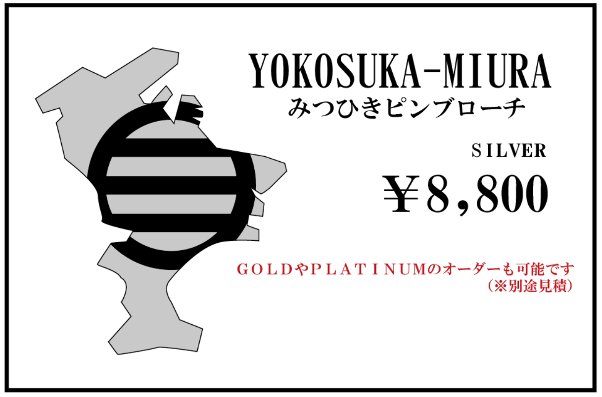 そんな三浦一族の家紋とゆかりの地、横須賀衣笠をモチーフにピンバッチを制作しました